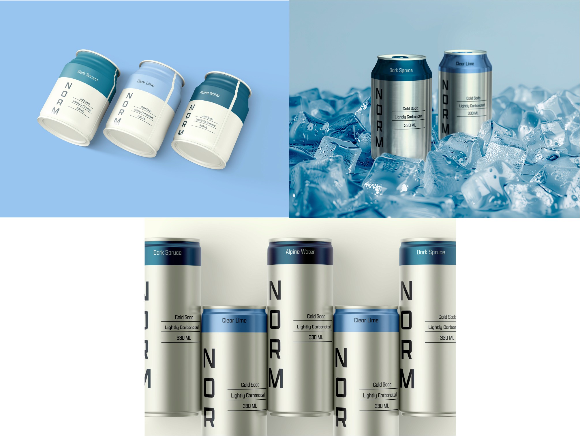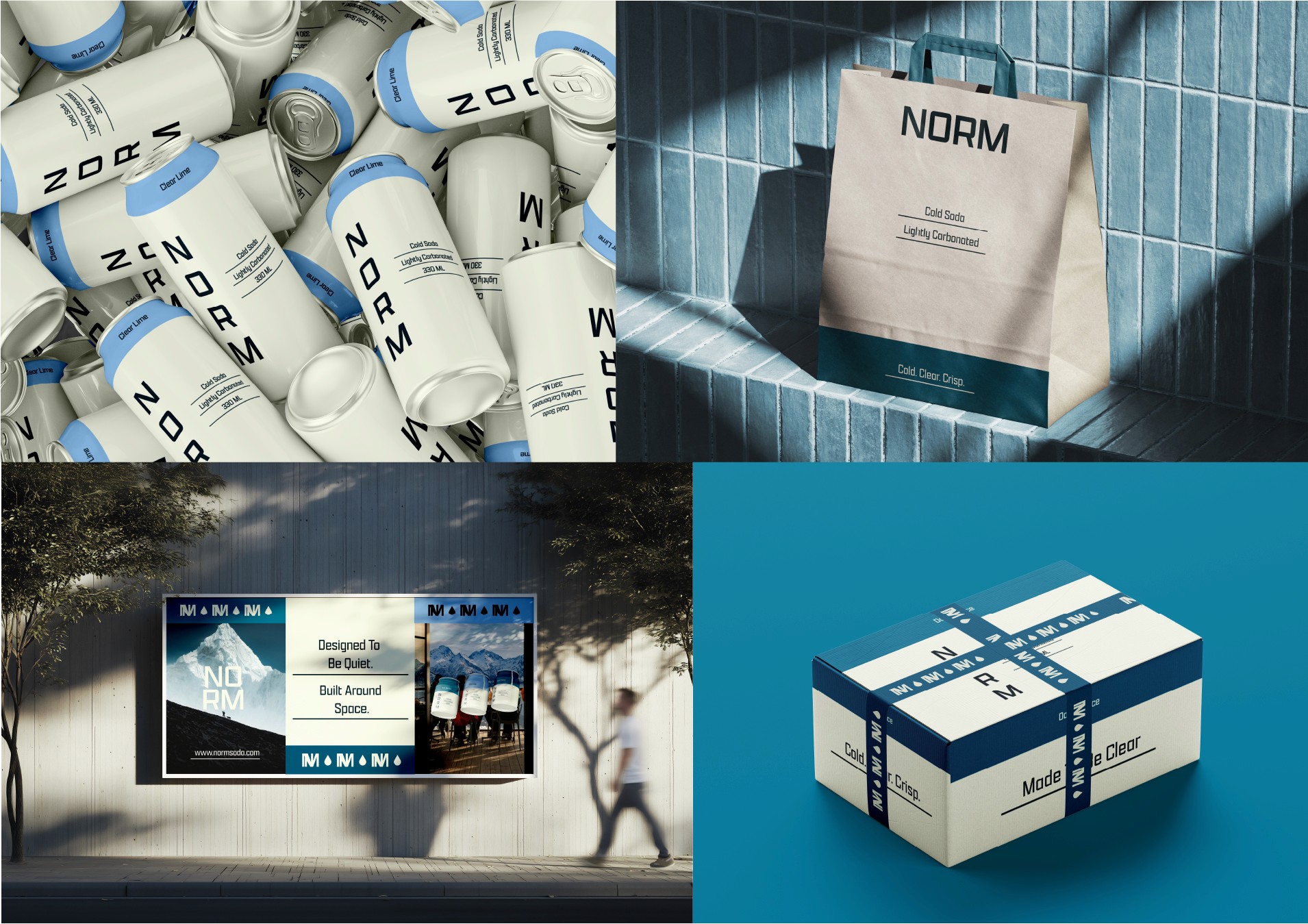 A contemporary soda brand inspired by the purity and stillness of alpine landscapes. Norm focuses on clarity, restraint, and simplicity—creating a refreshing, everyday drinking experience that feels crisp, light, and intentionally modern.